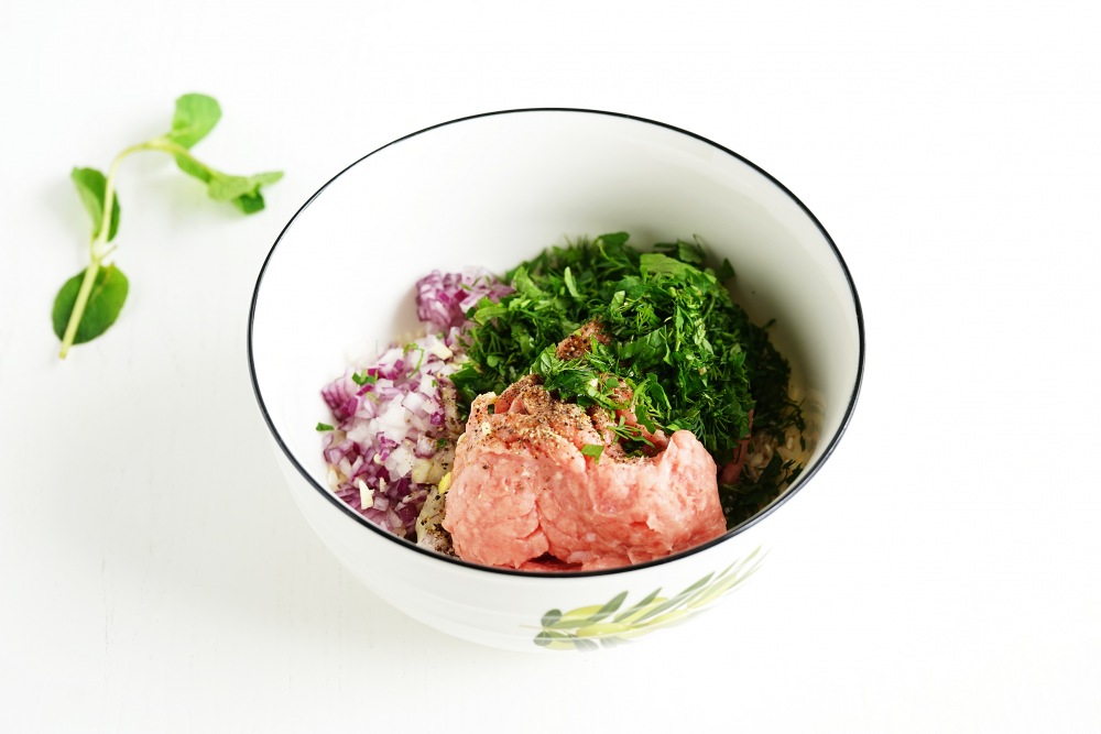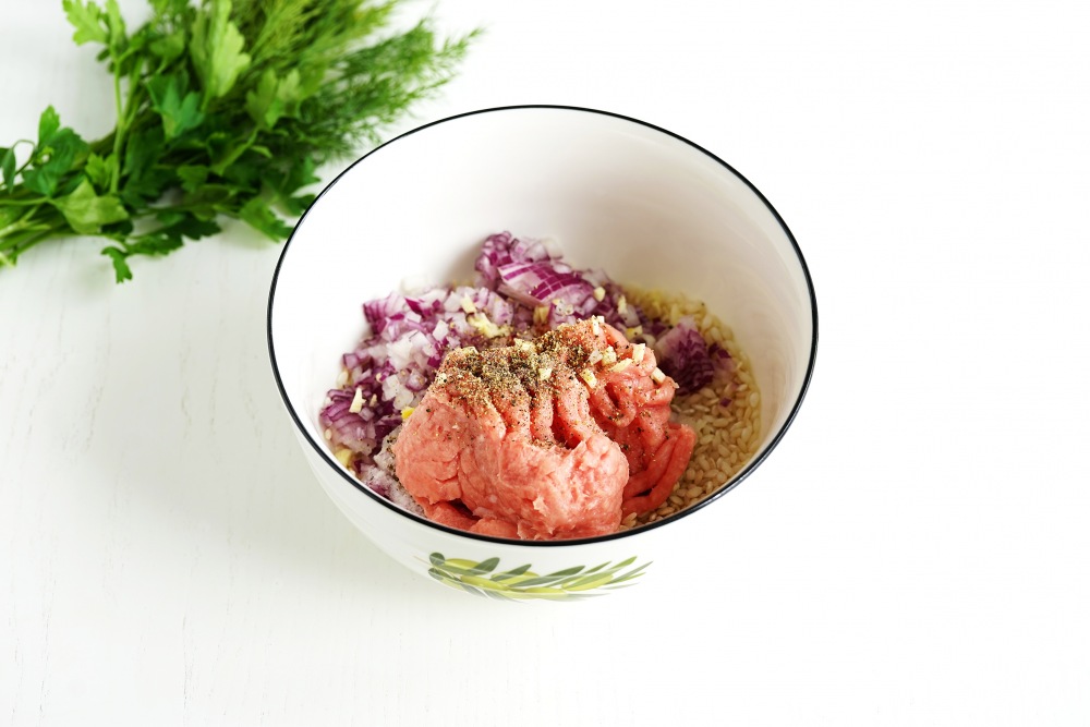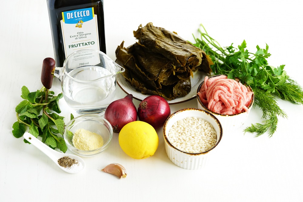 Подготовить все ингредиенты для долмы в виноградных листьях по классическому рецепту.