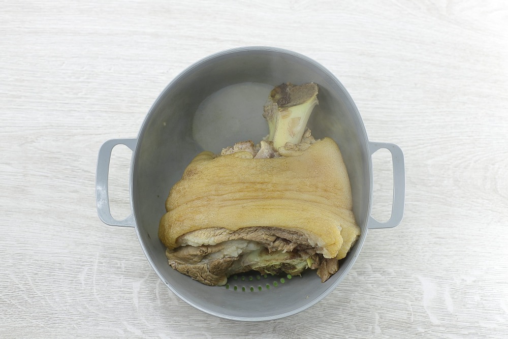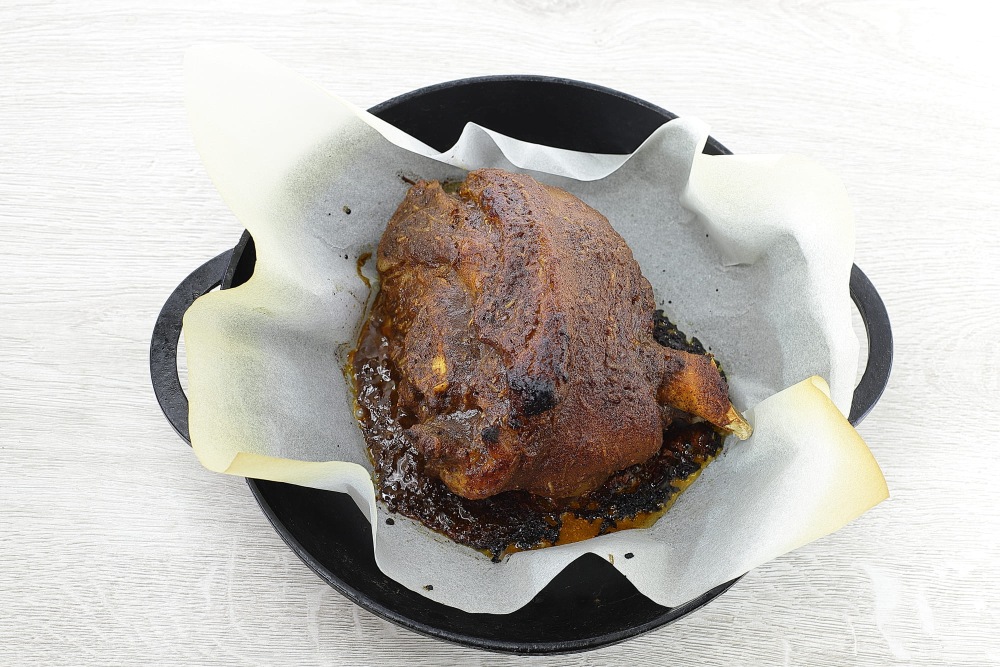 Готовую рульку снять с огня. Мне понадобилось 3 часа, чтобы мясо стало мягким.