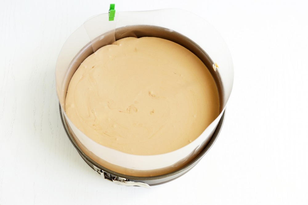Подготовить форму для торта. Я использовала ту же форму, где выпекался бисквит. Диаметр формы 22 см.