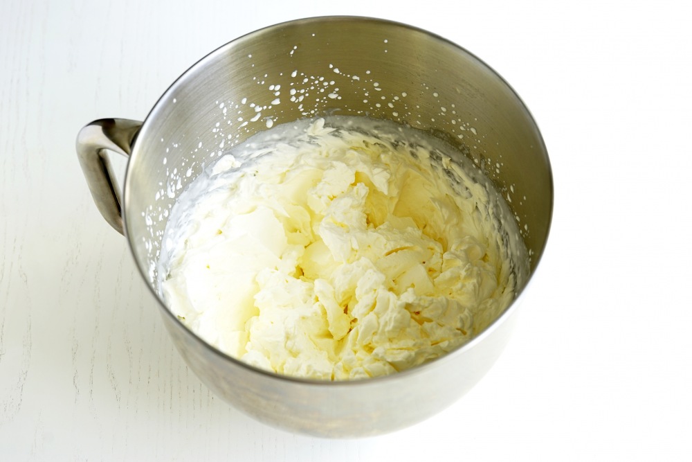В отельную глубокую чашу влить все сливки и хорошо взбить с помощью миксера. Масса должна получиться стойкой и воздушной. Чтобы сливки лучше взбивались, лучше всего их использовать охлажденными.