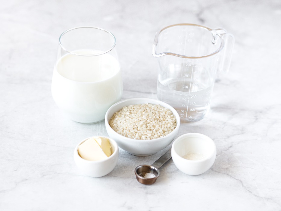 Рис нужно выбрать круглозерный, именно этот сорт хорошо варится и подходит для каши. Лучше не использовать рис “для плова”. Эти сорта риса обрабатывают растительным маслом и паром, что не позволит им хорошо развариться. Чаще всего, в составе риса “для плова” указаны помимо риса ещё и растительные масла. При выборе риса обратите внимание на состав, кроме риса там не должно быть других ингредиентов. Только круглозерный крахмалистый рис даст нужную вязкость каше.
