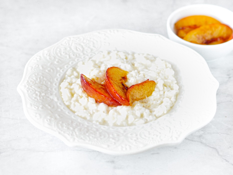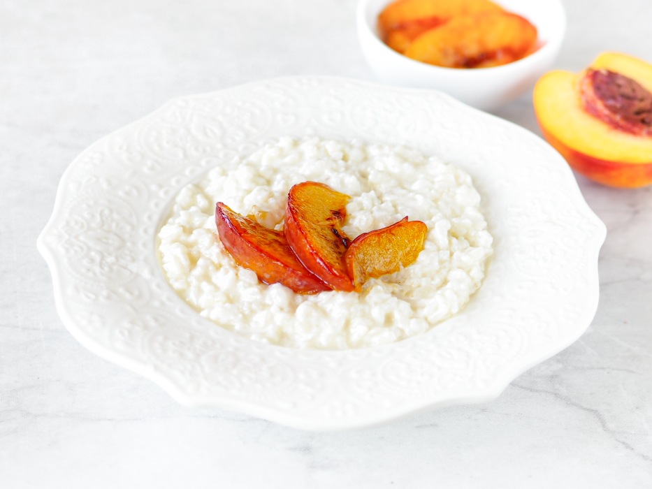 Для завтрака рисовая каша – идеальный вариант, особенно дополненная ягодами или фруктами. Мне нравится готовить ее с карамелизированными персиками или нектаринами.