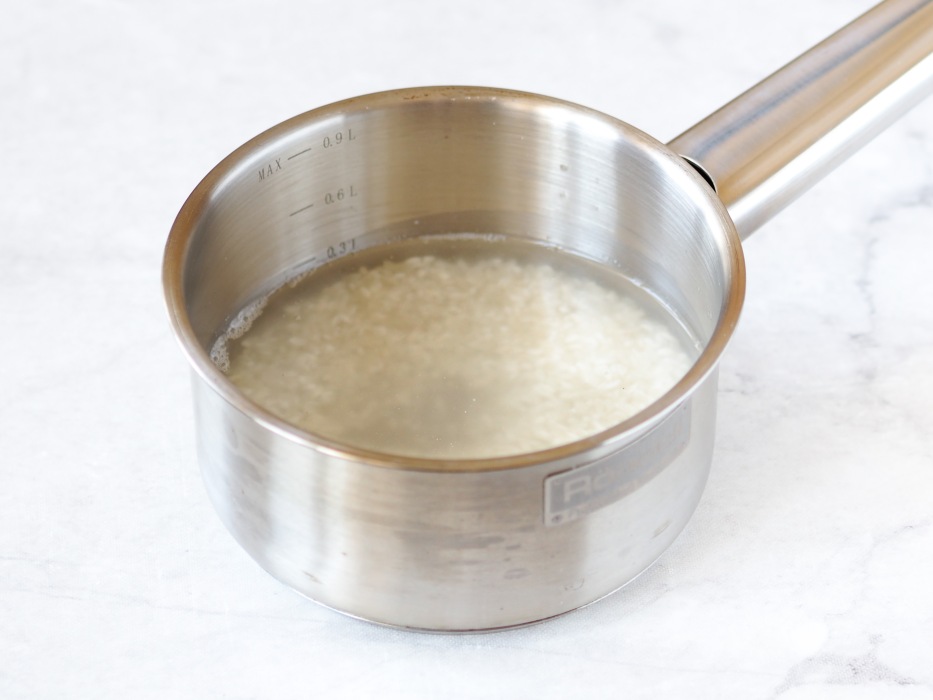 • Пересыпать рис в сотейник с толстым дном или небольшую кастрюлю. Залить рис водой. Если вы хотите сократить время приготовления рисовой каши утром, можно эти два этапа сделать накануне вечером. Оставить рис в воде на ночь или на несколько часов, чтобы он хорошо разбух. Я обычно ставлю рис с водой в холодильник.